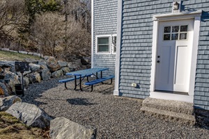 The outdoor grill area is just steps from the kitchen door, making it easy to prep and serve your favorite trailside meals. This convenient setup, framed by Maine granite, ensures you spend less time in the kitchen and more time enjoying the island air.