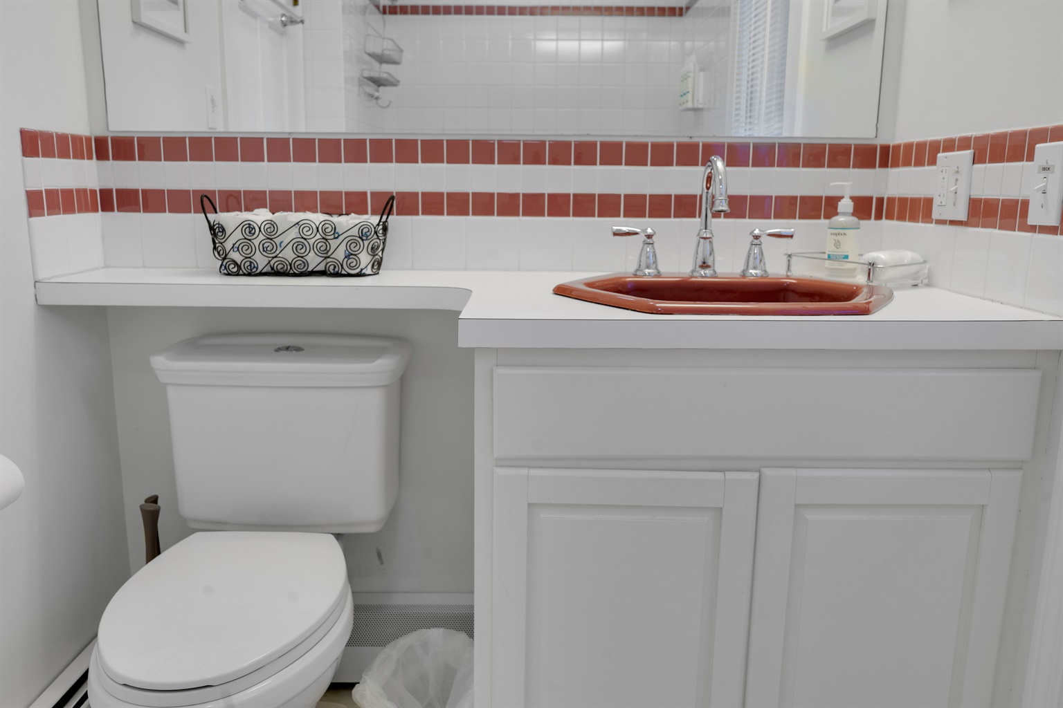 The guest bathroom is a total game changer for lake life, it features a direct access door to the backyard, so you can head straight from the pond to the shower without tracking water or sand through the main living areas.