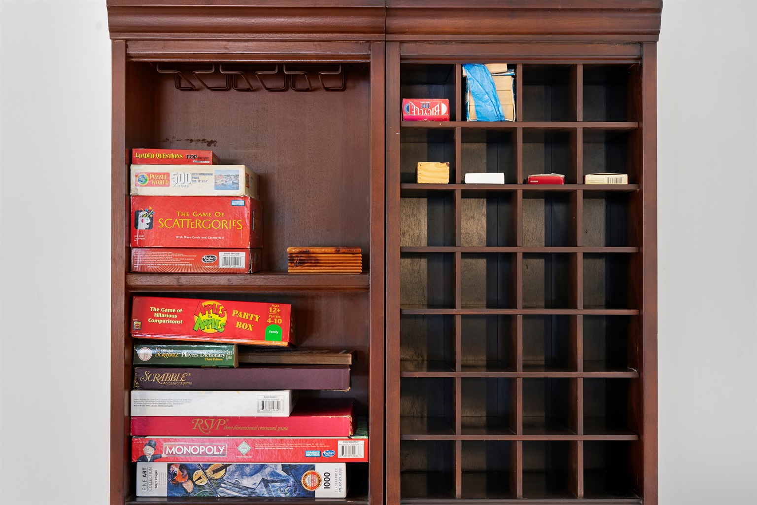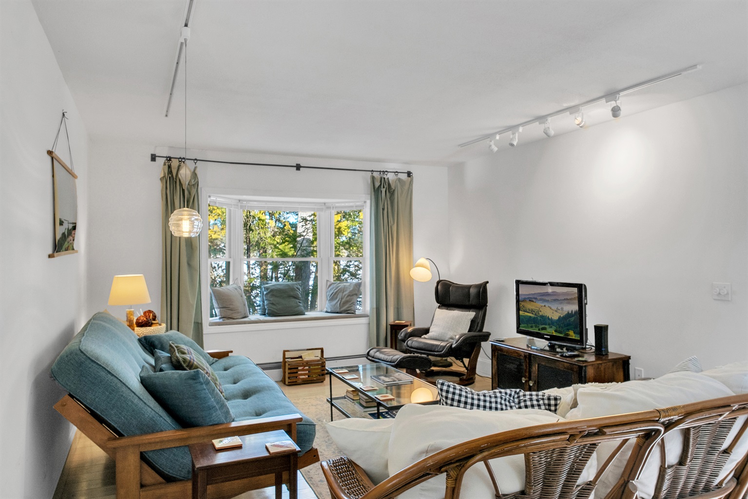 The dining area sits right next to the sliding glass doors, allowing the lake views to serve as your backdrop. It is the perfect spot for a seafood feast or for a fun evening of boardgames after the sun goes down over Long Pond.