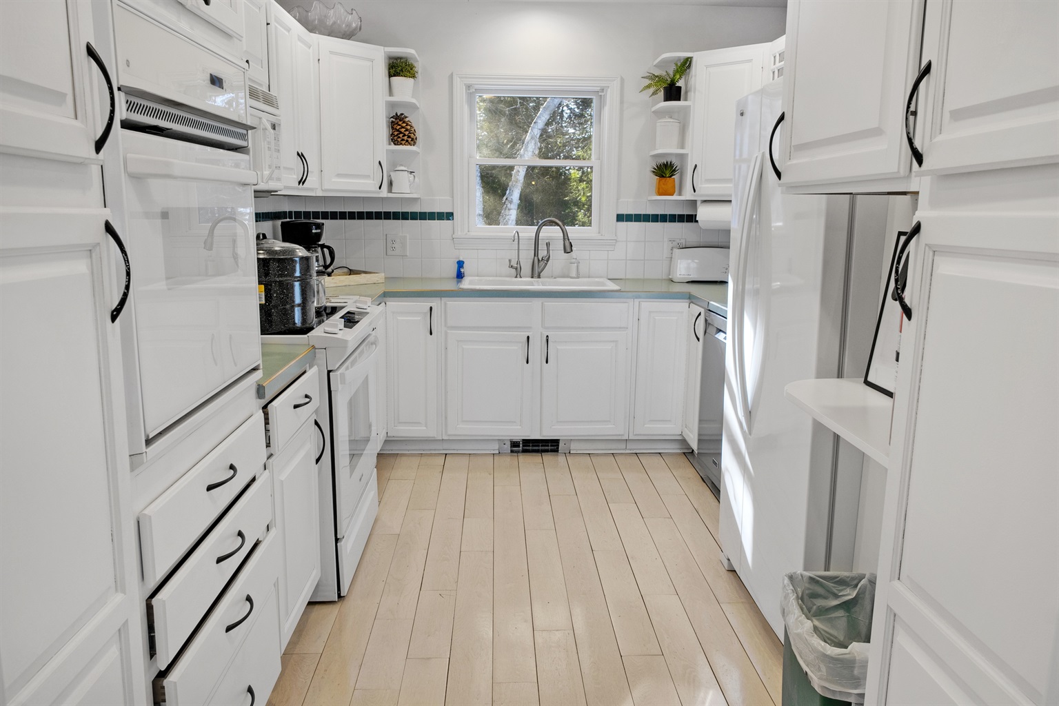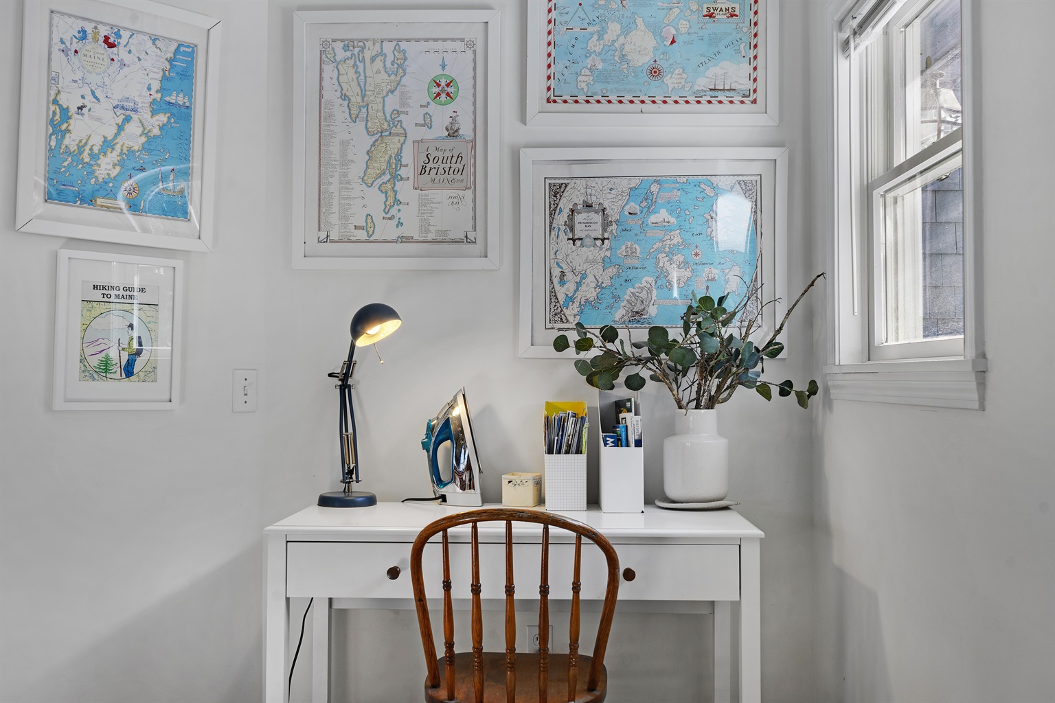 The kitchen is a bright and social space that makes group cooking a breeze. It comes exceptionally well provisioned with everything from a lobster pot for a traditional Maine bake to an air fryer for quick snacks.