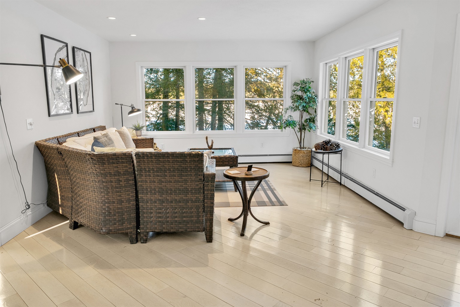 3 Bedrooms • 2 Bathrooms 2 Baths • Sleeps 1-6The magic of Northern Nest is its uninterrupted connection to the water and the expansive lakeside sunroom, where massive windows frame the pond like a living painting.