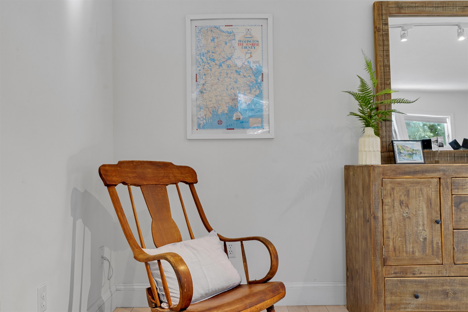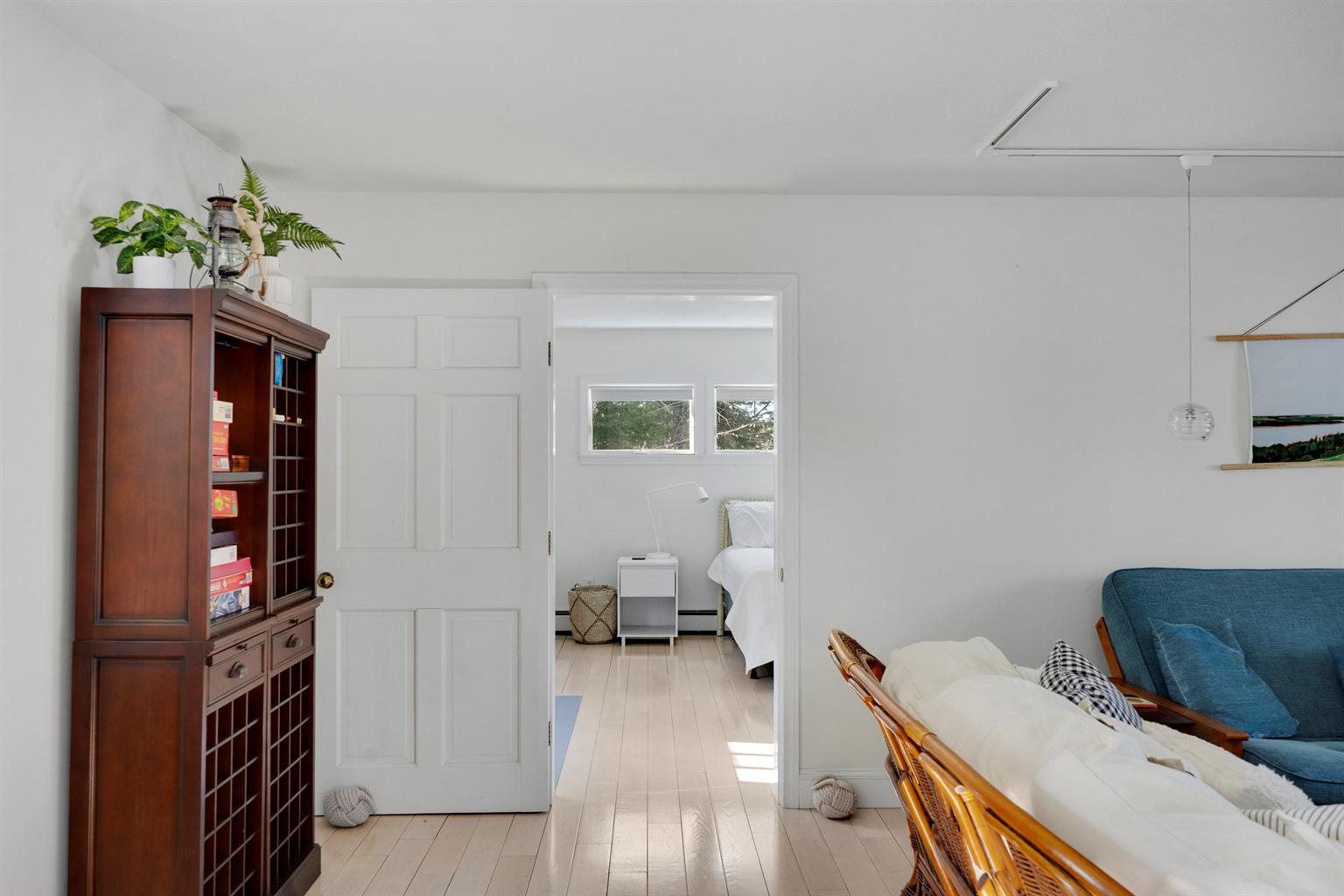 The smart, dual wing layout puts the bedrooms on opposite sides of the house, giving families and groups the perfect balance of shared social space and total evening privacy. From the striking blue kitchen to the rustic wood finishes, the vibe is relaxed, functional, and quintessentially Maine!